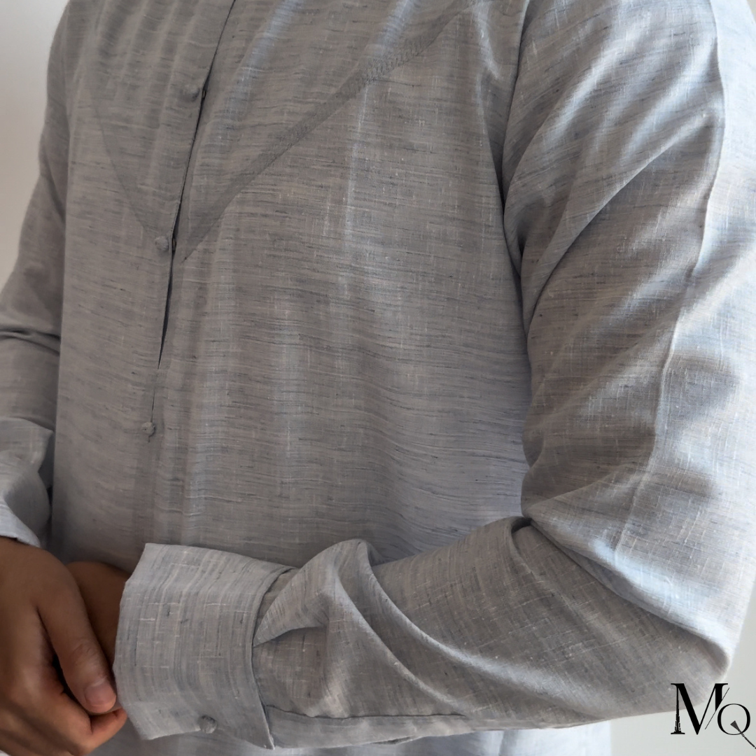 Conçu avec de tous nouveaux matériaux (Lin & coton mélangé) dans dans nos ateliers, ici aux émirats, par des couturiers experts dans la confection de Qamis.