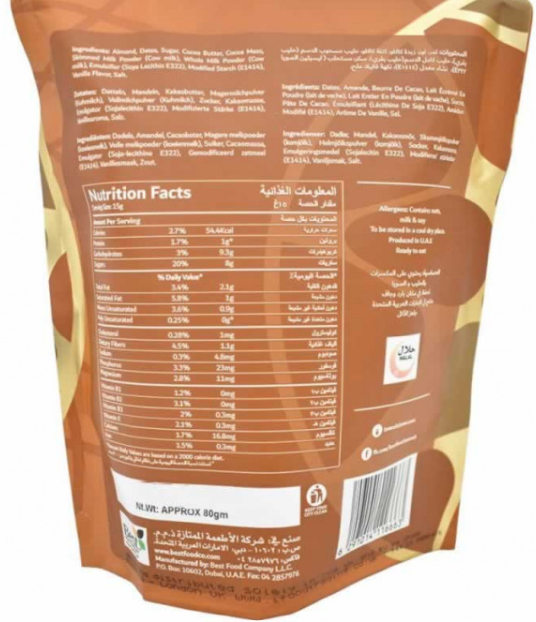 - Vérifiez l’étiquette de la variante exacte (noir / lait / caramel / coco)