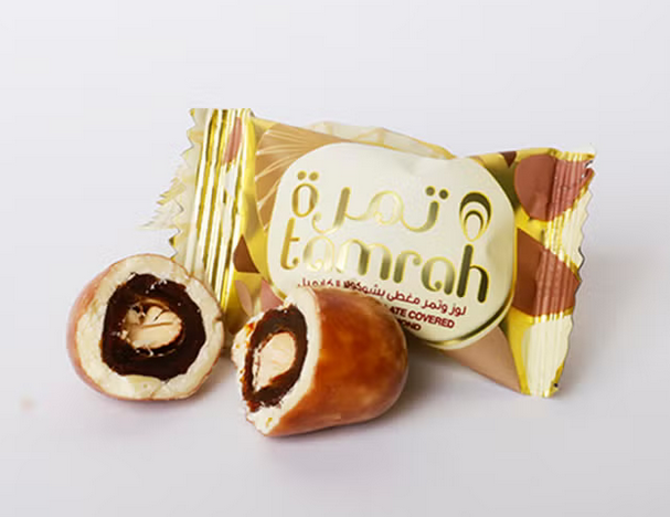 TAMRAH est reconnu pour ses dattes soigneusement sélectionnées, ses amandes grillées et son enrobage au chocolat, dans une approche “confectionery” inspirée de l’hospitalité orientale et du chocolat européen.