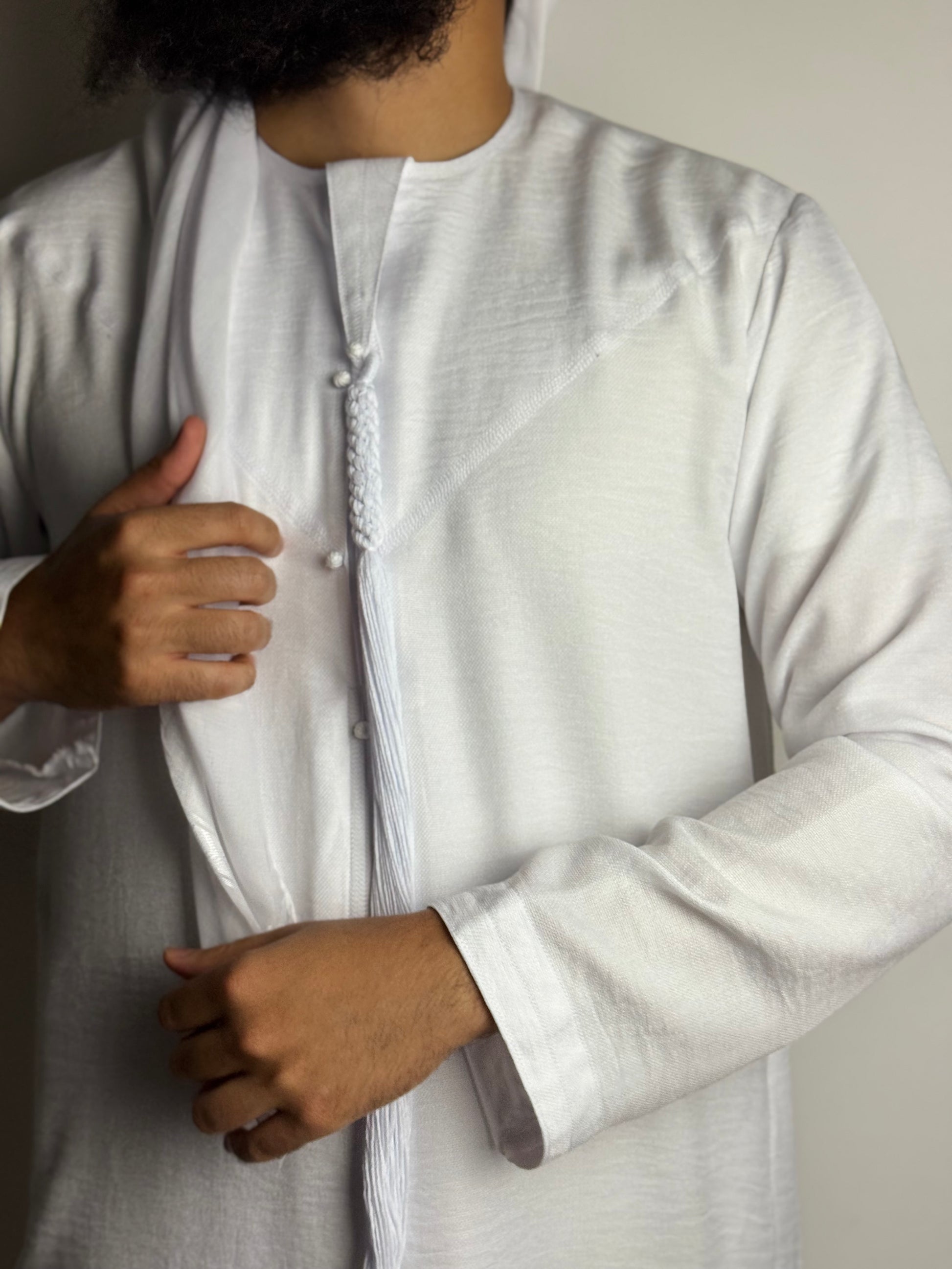 - 👕 Coupe Émiratie classique : manches longues ou courtes, col sans bouton
